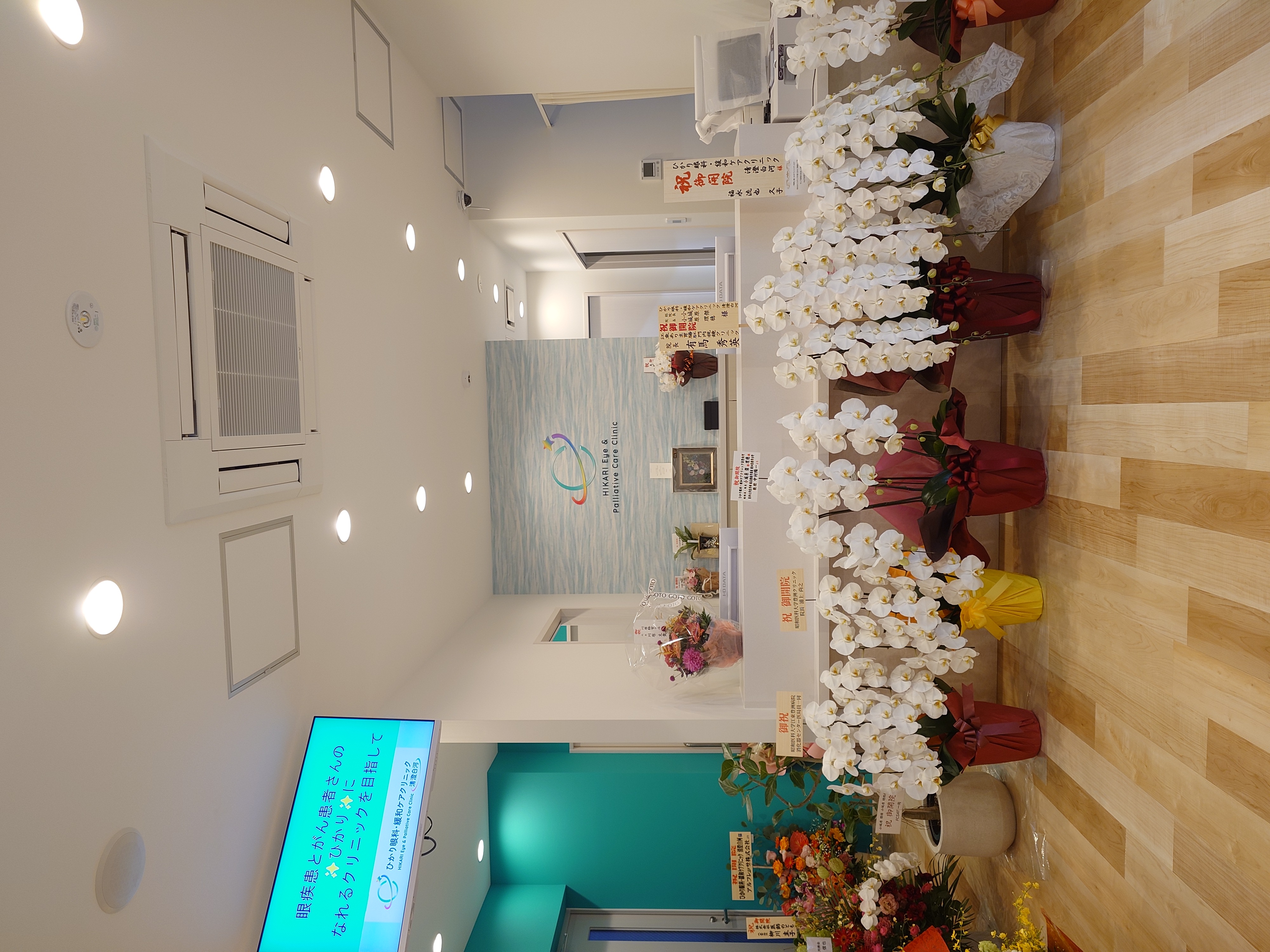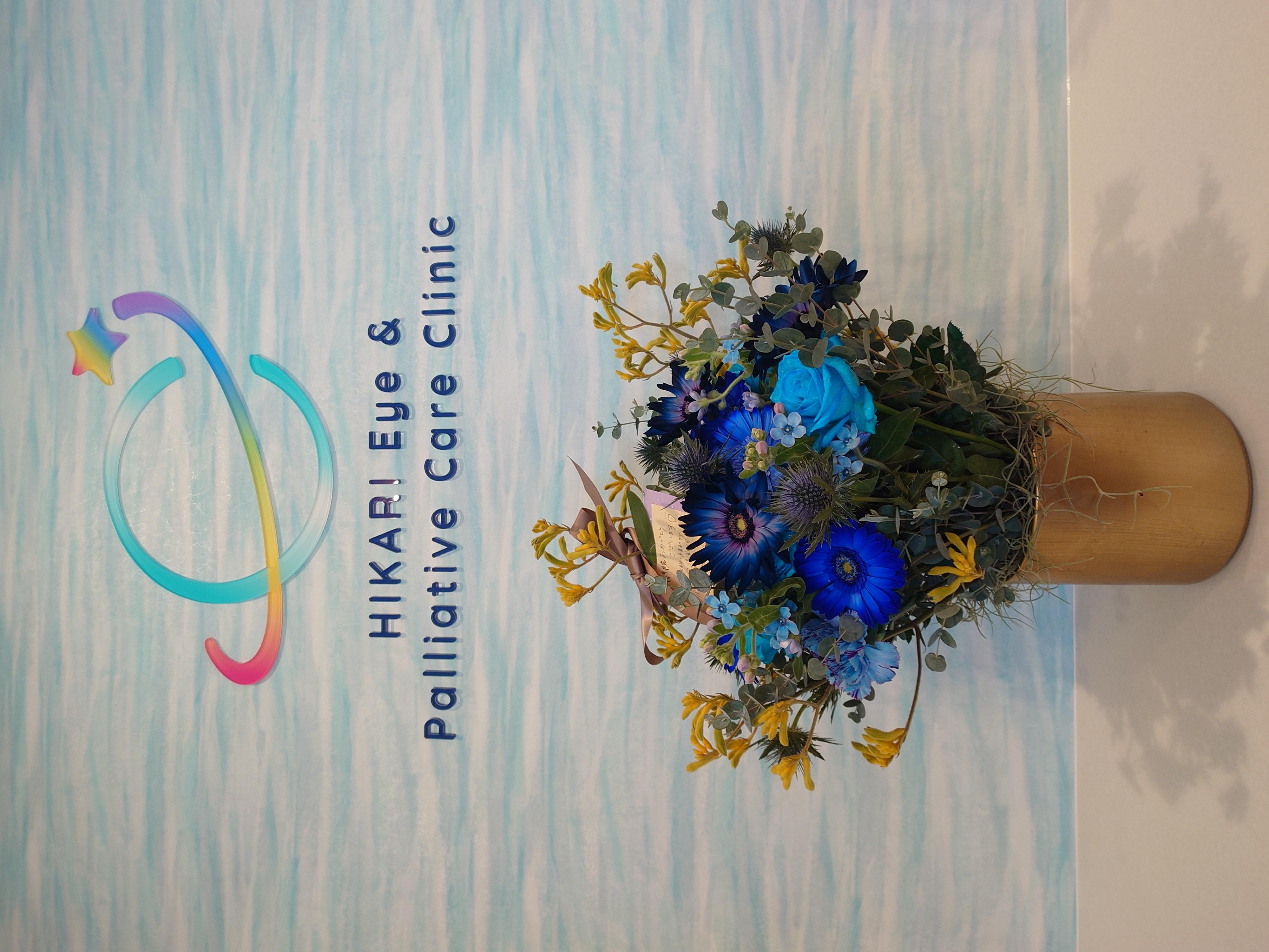 沢山のお祝いのお花をいただき、ターコイズブルーの院内の華やかな空間で皆さまをお迎えすることができました。
